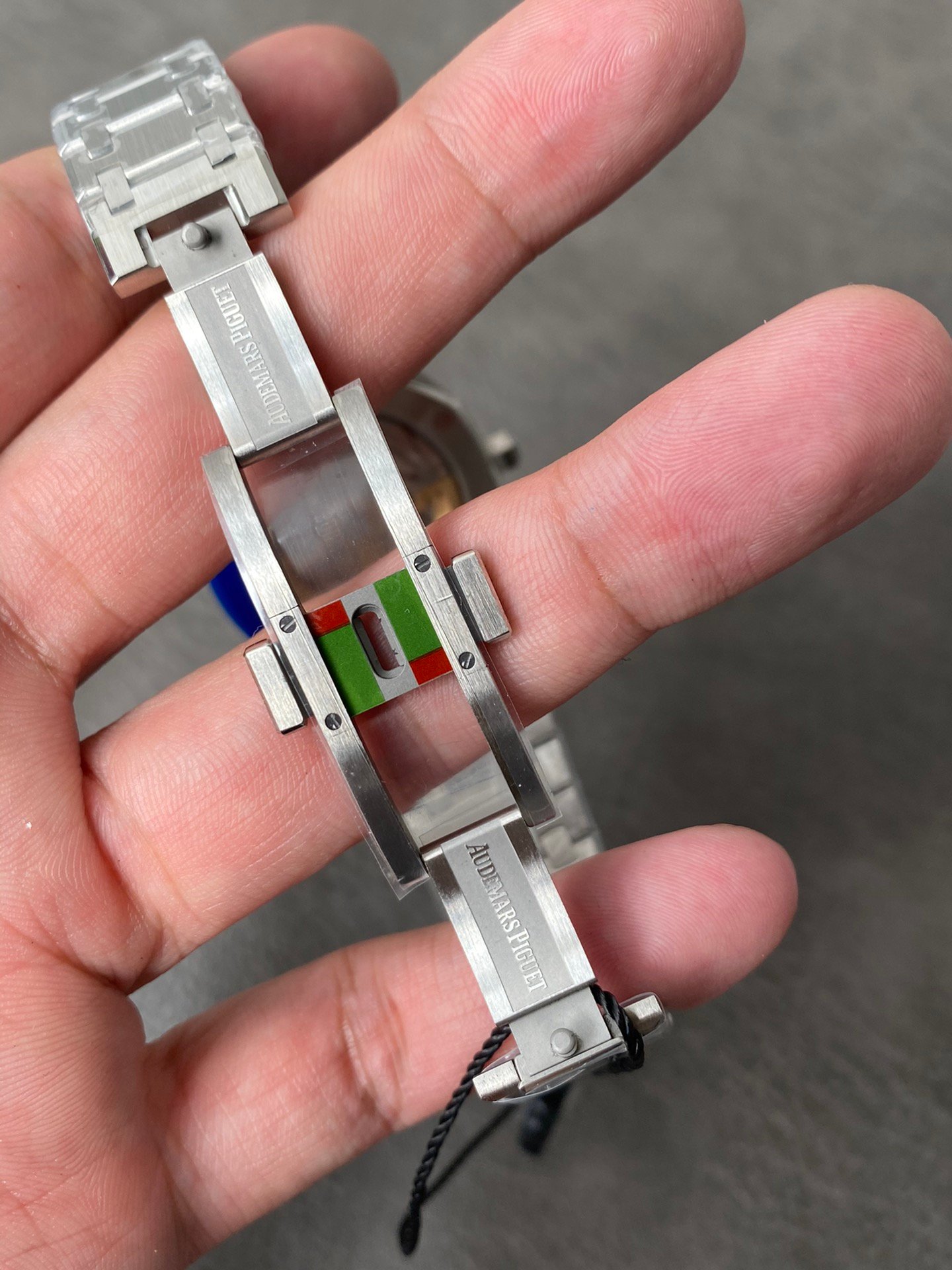 ·DialMaterial:BluedialwithPetiteTapisseriesmallgridpatterndecoration,luminescentwhitegoldappliedhour-markers,andRoyalOakluminescenthands.