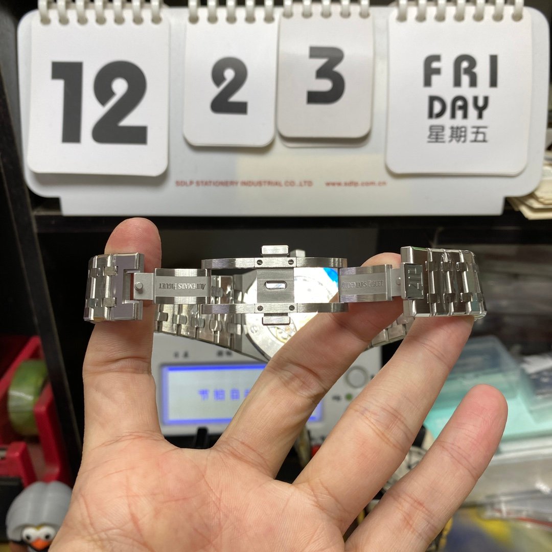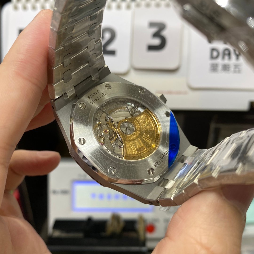 ·DialMaterial:SilverdialwithGrandeTapisserielargegridpatterndecoration,luminescentwhitegoldappliedhour-markers,andRoyalOakluminescenthands.