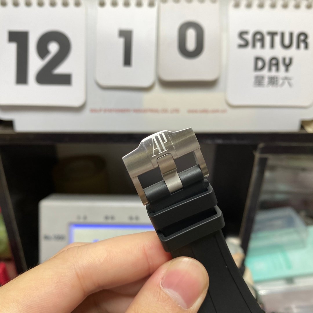 ·DialMaterial:GreyDialwithPetiteTapisseriePattern,BlackSub-dials,WhiteGoldLuminescentHourMarkers,andRoyalOakHands,BlackInnerBezel