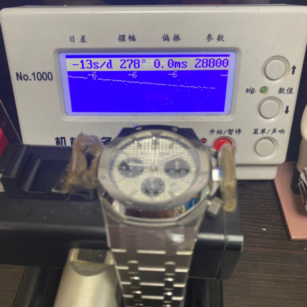 ·DialMaterial:Silverdialwith”GrandeTapisserie”largegridpatterndecoration,featuringablacksub-dialandouterzone,platinumluminescentappliedhourmarkers,andRoyalOakhands