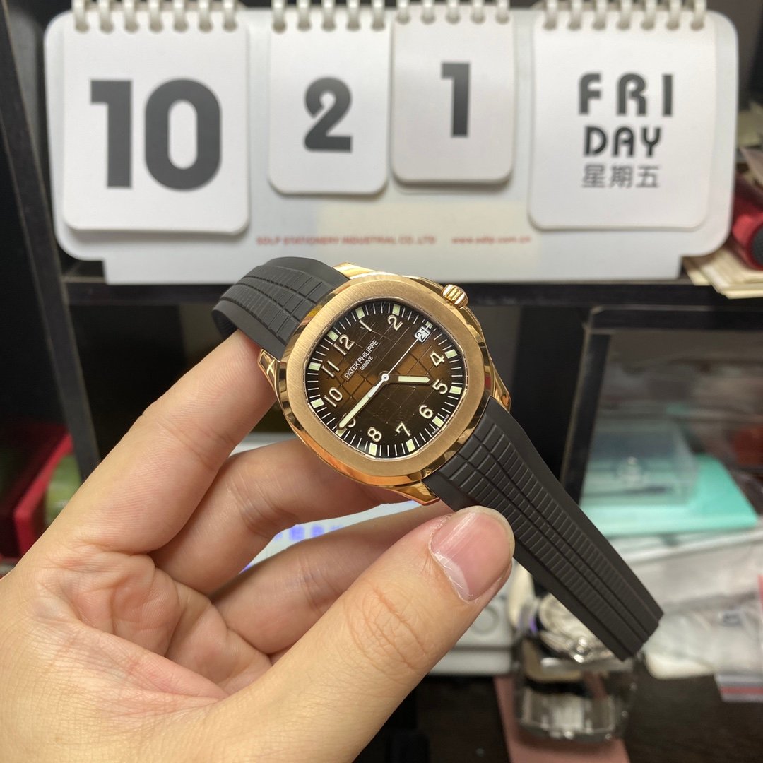 PatekPhilippeAquanautSeries5167R-001,RoseGoldCaseCoffeeDialBrownStrap,40mmSize.