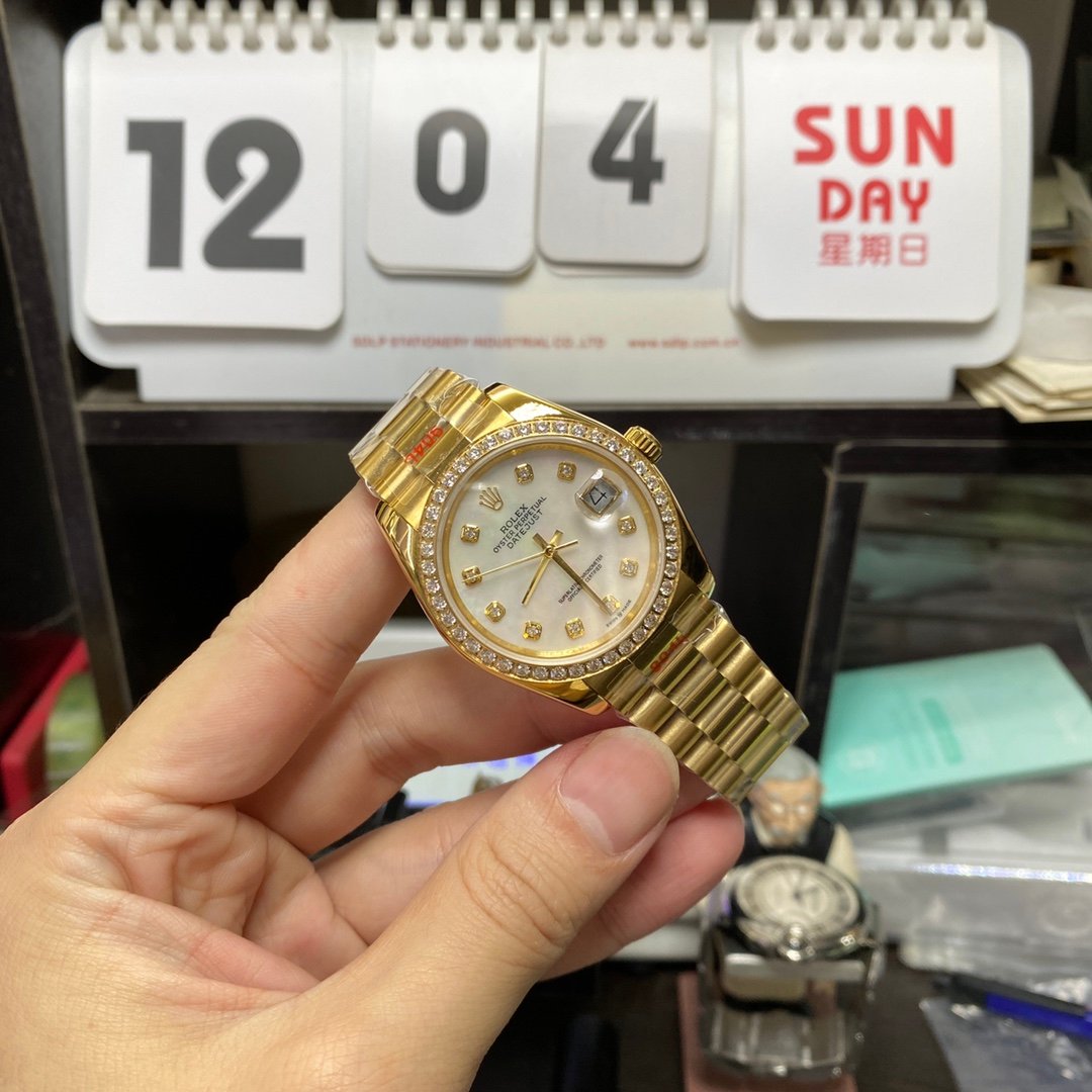 RolexDatejustSeries116243-63603,FullGoldDiamondBezel,36mmSize,Three-LinkSteelBracelet.