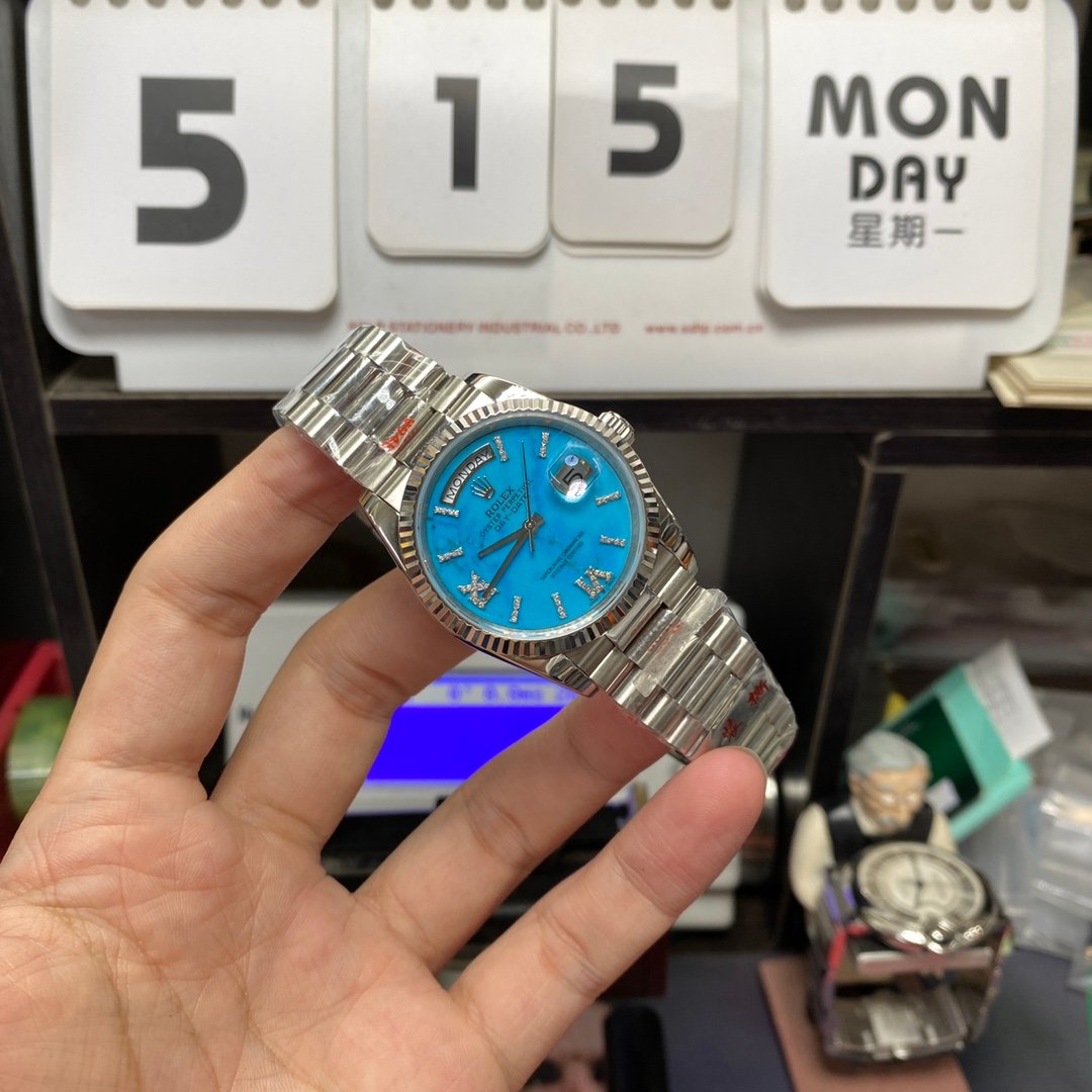 Rolex Day-Date series m128239-0044, Turquoise Dial, 36mm size.