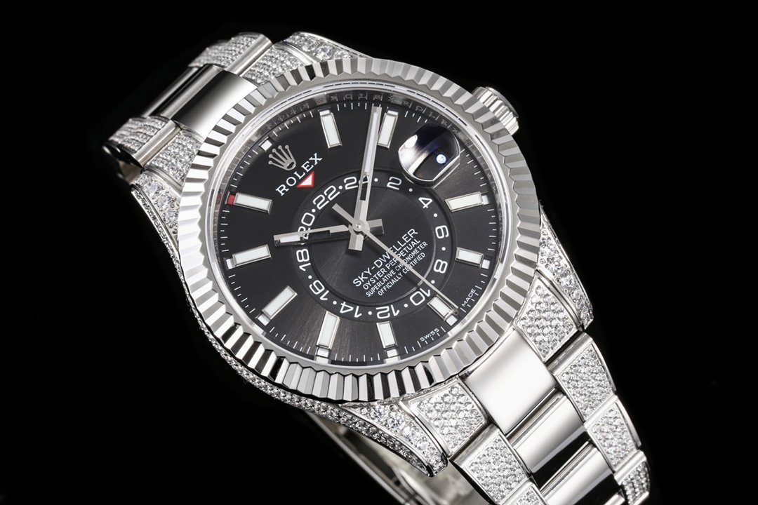 成为第一个“Rolex SKY-DWELLER series Black/BLUE Dial, FULL diamond case, ?,Month Date and GMT Dual Time Zone Functions, 42mm Size.” 的评价者