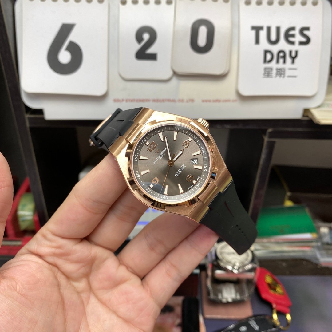 Vacheron Constantin Overseas Collection series 47040, 18K ROSE GOLD CASE GOLD GREY Dial Rubber Strap, 41mm Size.