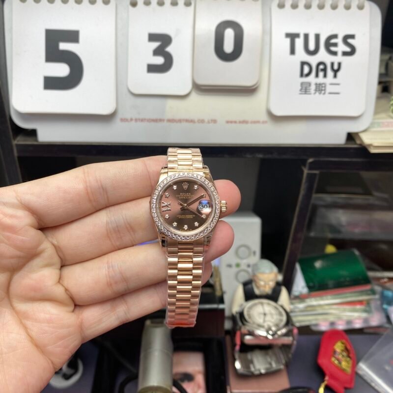 Rolex Datejust series m279135rbr-0001, Coffee Dial with Diamond Bezel and Full Rose Gold Case, 28mm size.