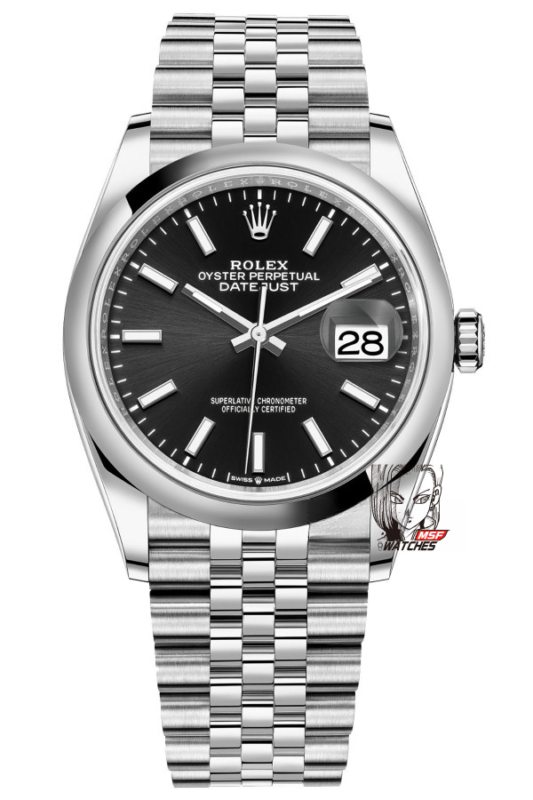Rolex Datejust Series m126200-0003, Black Dial with Fluted Bezel and Five-link Bracelet, 36mm Size.