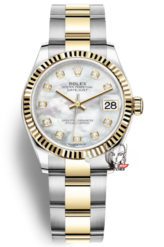 Rolex Datejust series m278273-0028, Two-Tone Gold Case with Mother-of-Pearl Dial, 31mm size.