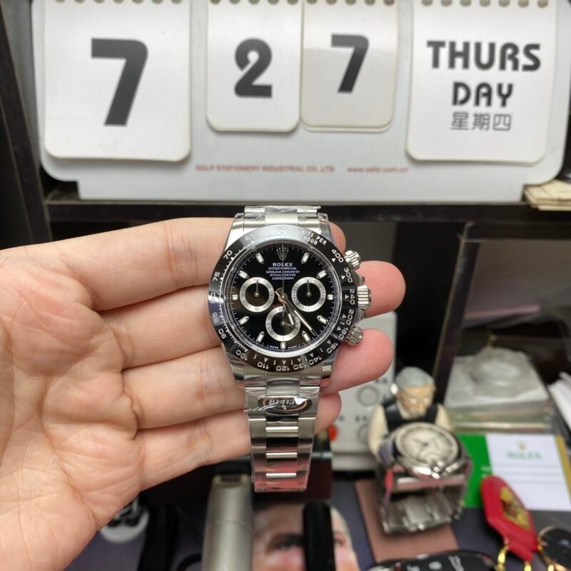 Rolex Cosmograph Daytona Series m116500ln-0002, black panda color scheme, 40mm size.