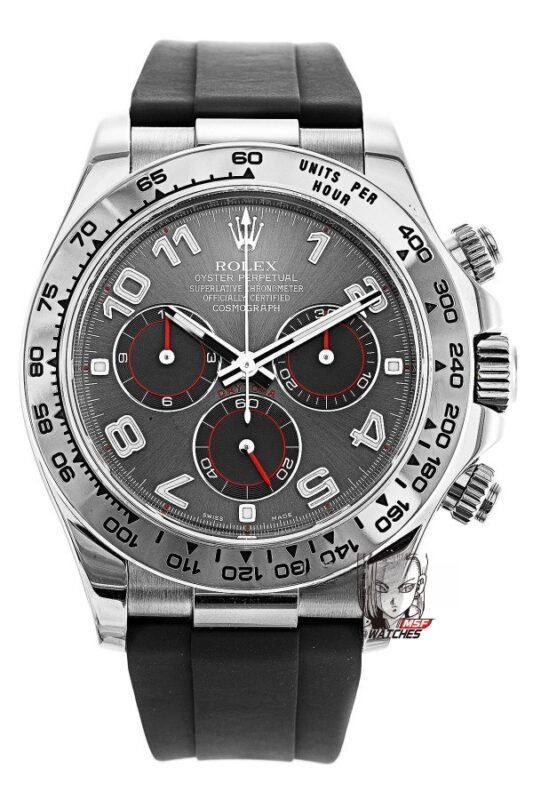 Rolex Cosmograph Daytona Series 116519-0104, Grey Dial with Red Hands Roman Numerals, 40mm size.