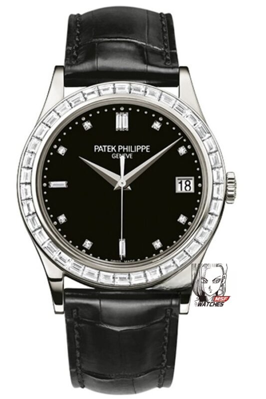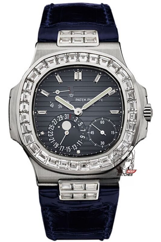 Patek Philippe Nautilus series 5724G-001, Square Diamond Bezel Blue Dial Blue Leather Strap, 40mm size.
