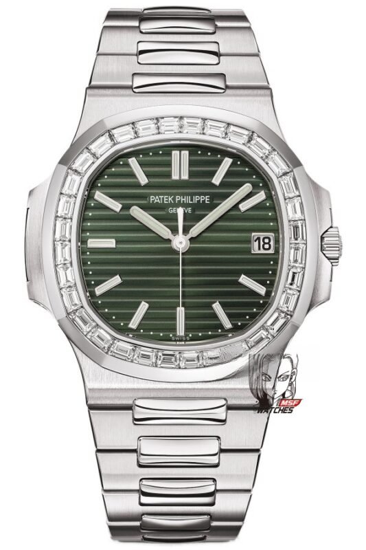Patek Philippe Nautilus series 57111300A-001, Olive Green Dial with Square Diamond Bezel, 40mm Size.