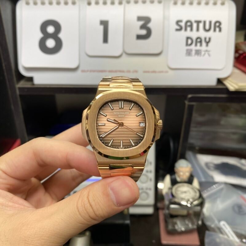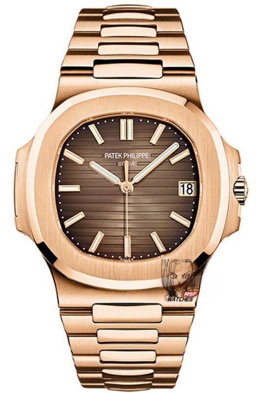 Patek Philippe Nautilus series 5712GR-001, Coffee Dial Rose Gold Case Brown Leather Strap, 40mm size.